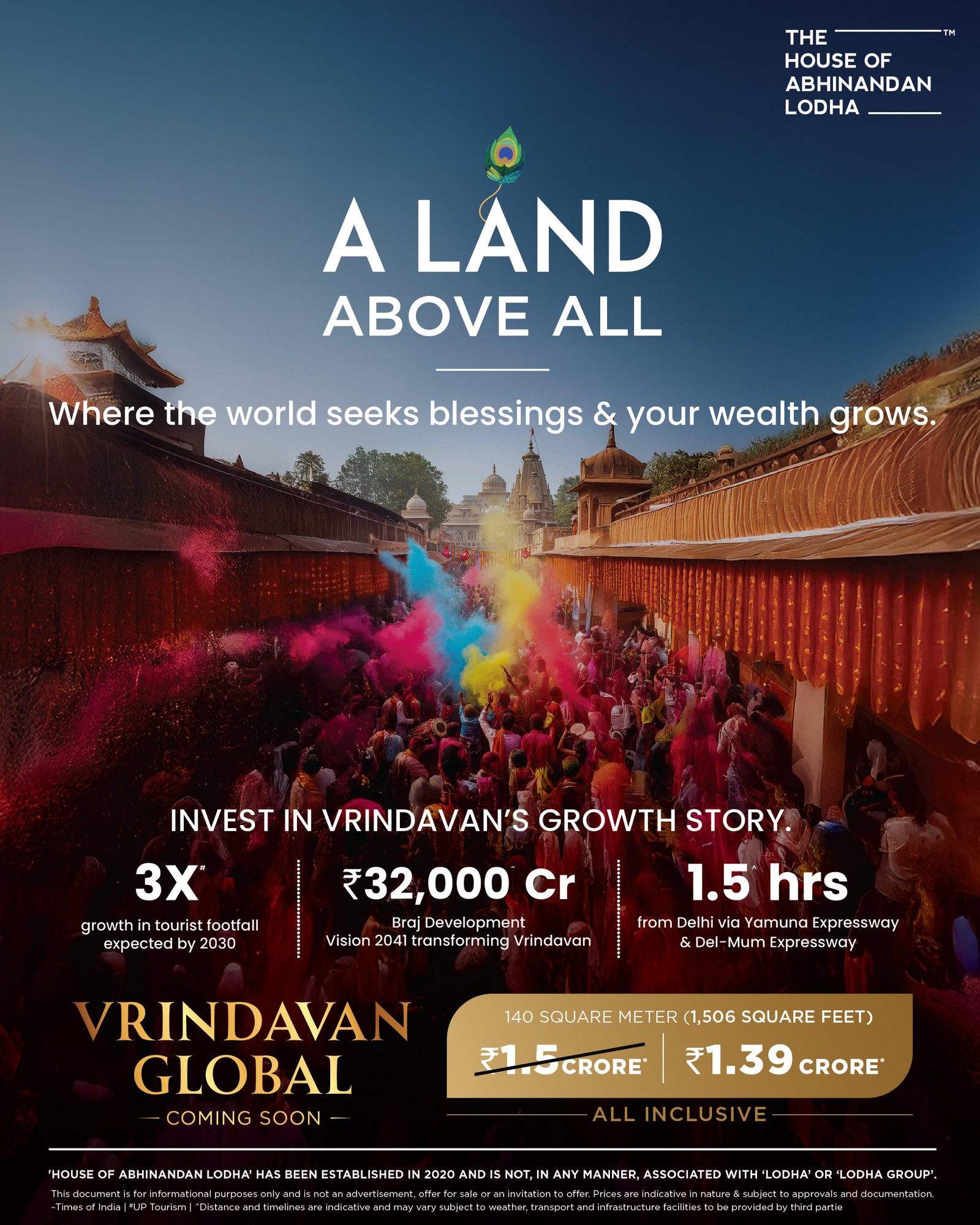 Find a once-in-a-lifetime chance to acquire outstanding Hoabl Vrindavan plots in the country of growth and devotion. Vrindavan is delighted to offer privileged access to The House of Abhinandan Lodha Vrindavan, a signature project crafted to harmonize spiritual essence, contemporary living, and long-term value.